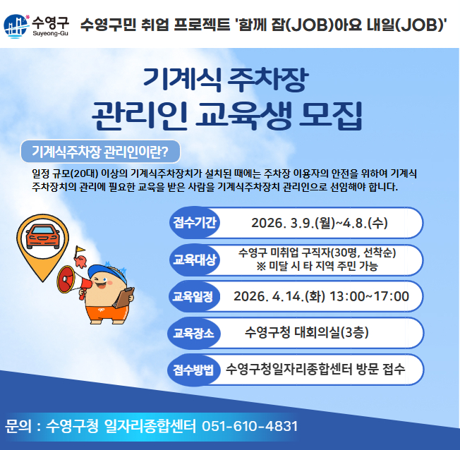 문의 : 수영구청 일자리경제과 일자리창출계 창업담당 (051-610-4832)