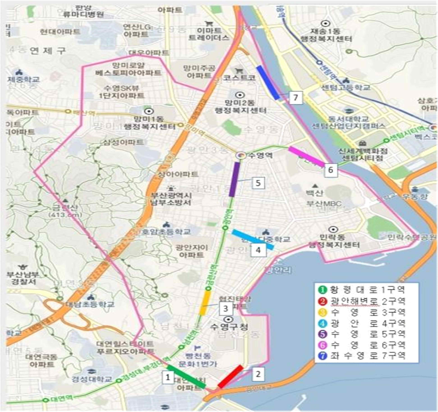 | 4 | 광안동SK뷰아파트 ~ 서울반점 앞 | 14 | |
