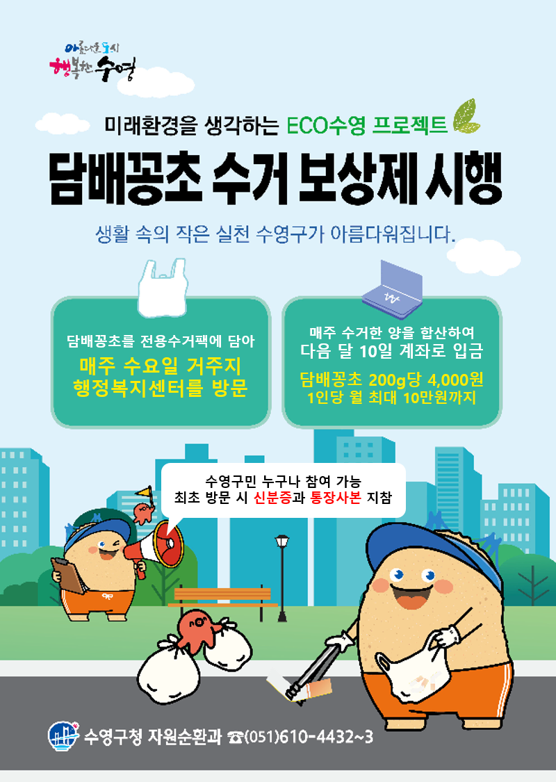 4) 추진내용 : 담배꽁초 1g당 20원(1인 월 최대 10만원 한도)